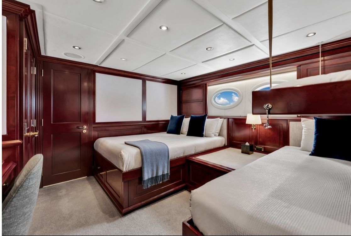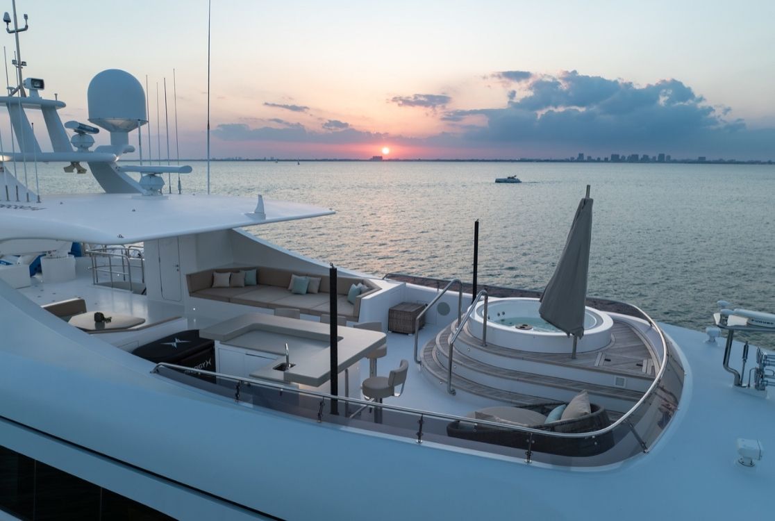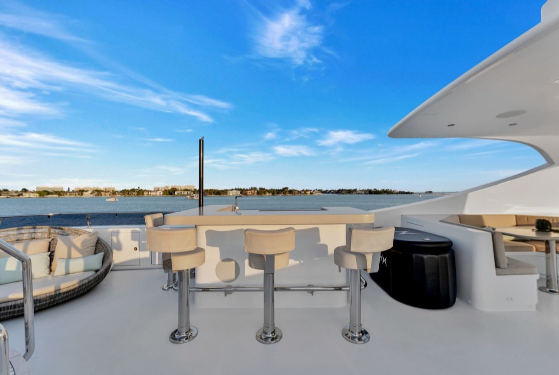 Outdoor living is where this Mega Yacht truly shines. Expansive decks invite guests to celebrate in total privacy, featuring a jacuzzi deck and panoramic ocean views. Perfectly equipped for private yacht charters to Bimini or Nassau, it includes an exceptional selection of water toys such as jet skis and Seabobs. Every charter aboard the 166’ VIP Mega Yacht is a statement of style, exclusivity, and elevated living.
