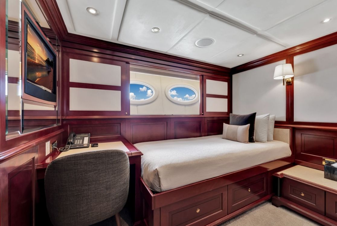 • Cabins: 7 luxury staterooms