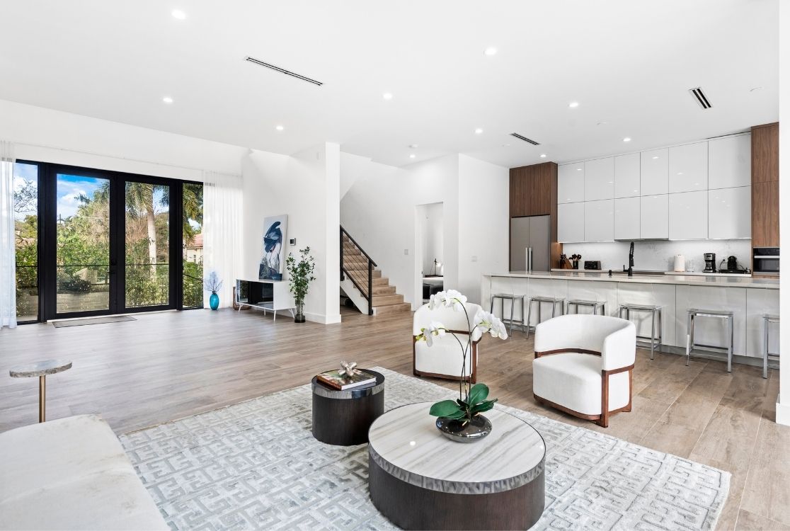 This Villa Summercrest is a brand-new modern retreat located in the prestigious heart of Miami Shores. If you are looking to rent a villa in Miami that perfectly blends elegance with contemporary design, this 4,207 sq ft residence is an outstanding choice. Available for luxury villa rental with VIP in Miami, this home features soaring ceilings and bright open spaces that create a serene and refined atmosphere.